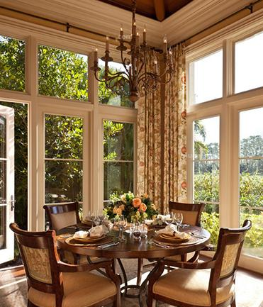 總結:在一個不大的空間內,設計了一個極具異域風情的陽光房,這個陽光房的設計將美式風格的自然與古樸特點在空間內流淌。棕色調的餐桌椅搭配上碎花的窗簾,仿佛將人帶入了極具傳統韻味的鄉村小屋內。而整面的窗戶設計,可推開式的玻璃門,將陽光灑進這個居室內,使得空氣中都彌漫著暖洋洋的氣息。