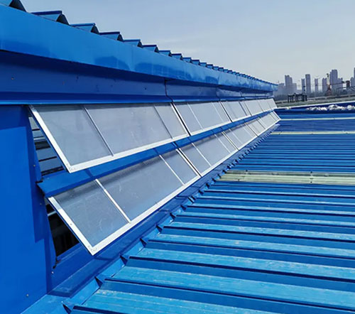 三角型電動采光排煙天窗的叫法也來源于其外觀造型,窗扇與安裝面呈一定夾角,其傾斜窗面設計,有利于雨水的排出。其窗扇開啟角度范圍在0°-60°左右,上開啟時,有效通風面積與天窗開口一致,通風效果好,下開啟時,防雨性更佳。適用有排水需求的廠房,主要以采光為主,有需要的時候進行開窗通風排煙的廠房常選用該類型天窗。