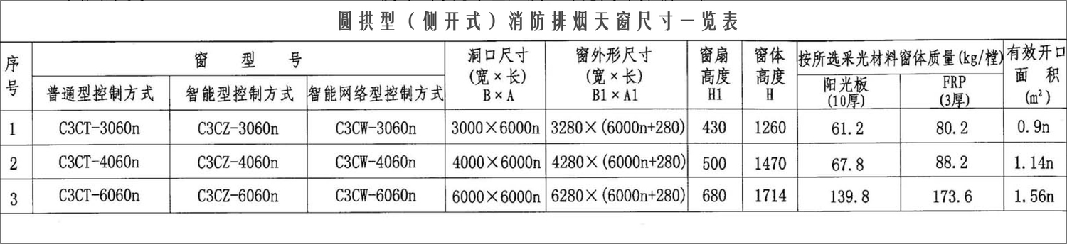 圓拱型(側開式)消防排煙天窗有三種控制方式,普通控制方式、智能控制方式、智能網絡控制方式,消防排煙天窗的洞口尺寸可根據廠房需求定制,側開式天窗的尺寸一般比較大,可達到3000mm-6000mm,可根據需要裝配單排或多排窗扇,其防雨性能突出。其適用條件包括:屋面坡度為2%-10%的建筑;基本風壓小于900Pa的地區;沒有高溫及腐蝕性的建筑。